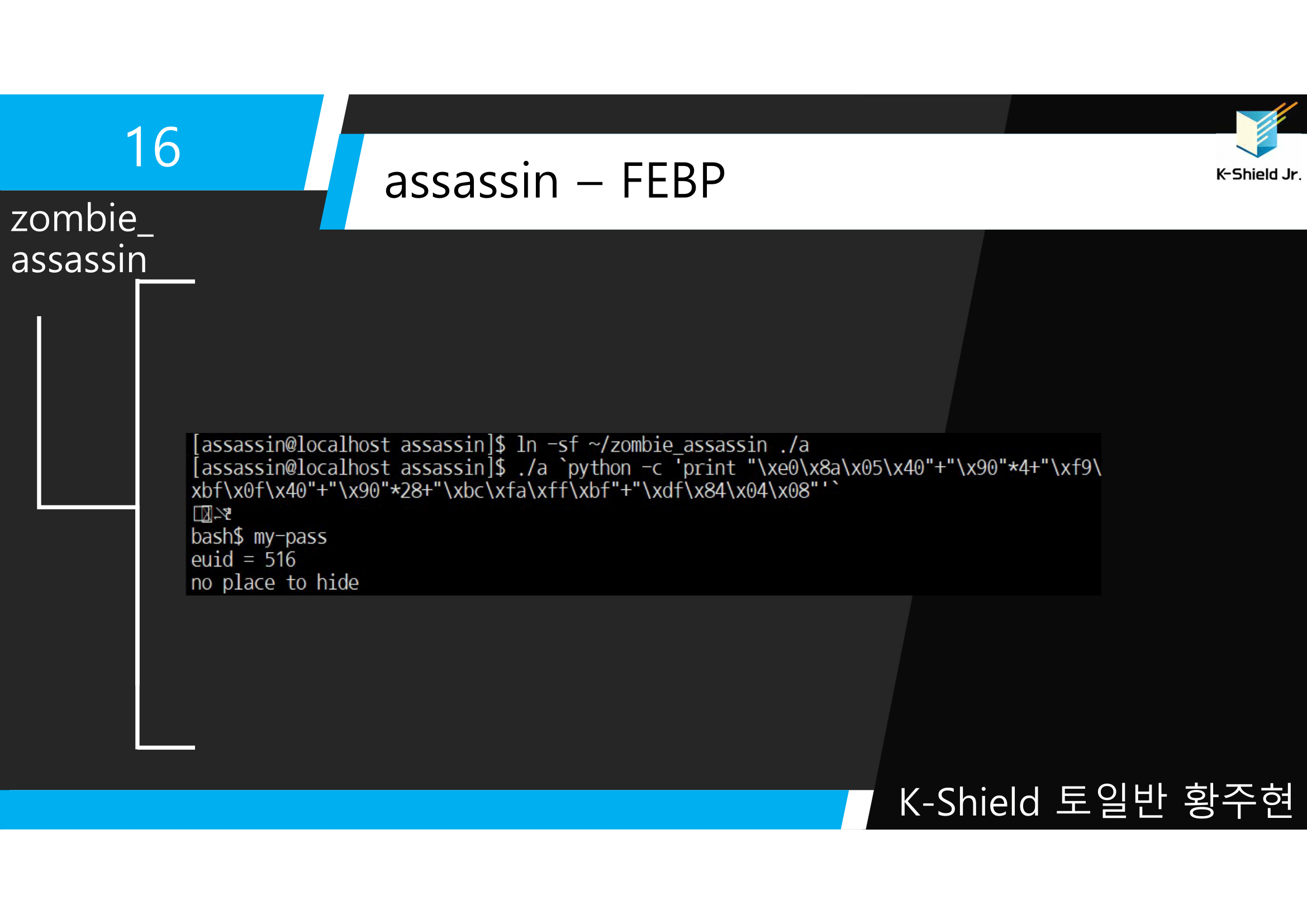 ▲ LOB 16번. assassin -> zombie_assassin 문제이다. zombie_assassin.c와 zombie_assassin 파일이 존재한다.